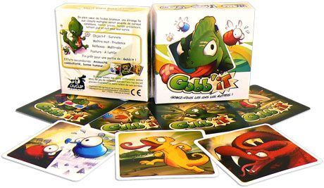 La jungla es un lugar muy peligroso, repleto de potenciales depredadores... ¡Sobre todo cuando eres pequeño! Gobb'it es un juego trepidante, muy adictivo y tremendamente divertido. Las cartas se descubren a gran velocidad y tienes que estar pendiente de todas ellas. ¿Eso de ahí es una posible presa? Corre, coloca tu mano sobre ella antes de que se escape. ¿Tu compañero acaba de sacar uno de tus depredadores? Más te vale que te protejas antes de que te coma. ¡Oh, no! Ha aparecido el temible gorila. Huyamos mientras podamos. Una vez hayas probado Gobb'it, no querrás parar. Tus amigos te pedirán una partida tras otra y tus reflejos se volverán cada vez más afilados. Y, cuando ya os sintáis seguros jugando al juego básico, podéis añadir las reglas para expertos. Nuevas e hilarantes situaciones os esperan. Con Gobb'it cualquier reunión de amigos se convierte en una fiesta. ¿Quién iba a pensar que sería tan divertido devorar mosquitos.