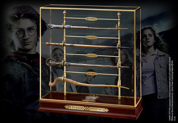 Discover the magic wands of the 4 champions of the 3 Wizards Tournament: Cedric Diggory, Hufflepuff's team captain and seeker, Fleur Delacour, student of the French magic school of Beauxbatons, Victor Krum, the Bulgarian team's famous search engine and the Durmstrang school, Harry Potter, Gryffindor school seeker. This magnificent display contains the 4 magic wands. It measures approximately 43 cm. High.