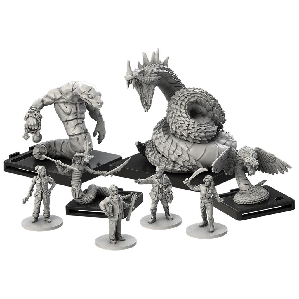 La expansión La Senda de la Serpiente emplaza a los investigadores en las regiones salvajes e inexploradas de la selva amazónica. Allí habrán de desentrañar los secretos más antiguos de civilizaciones perdidas, deshacer la maldición de una serpiente y explorar ruinas engullidas por la vegetación. En sus tres nuevos escenarios, los investigadores combatirán a los espantosos hombres serpiente, se enfrentarán a monstruosidades de piedra que han cobrado vida y arrostrarán el omnipresente riesgo de perderse para siempre en la espesura. Deberán luchar con uñas y dientes para sobrevivir a las expediciones por los confines más olvidados de este mundo.