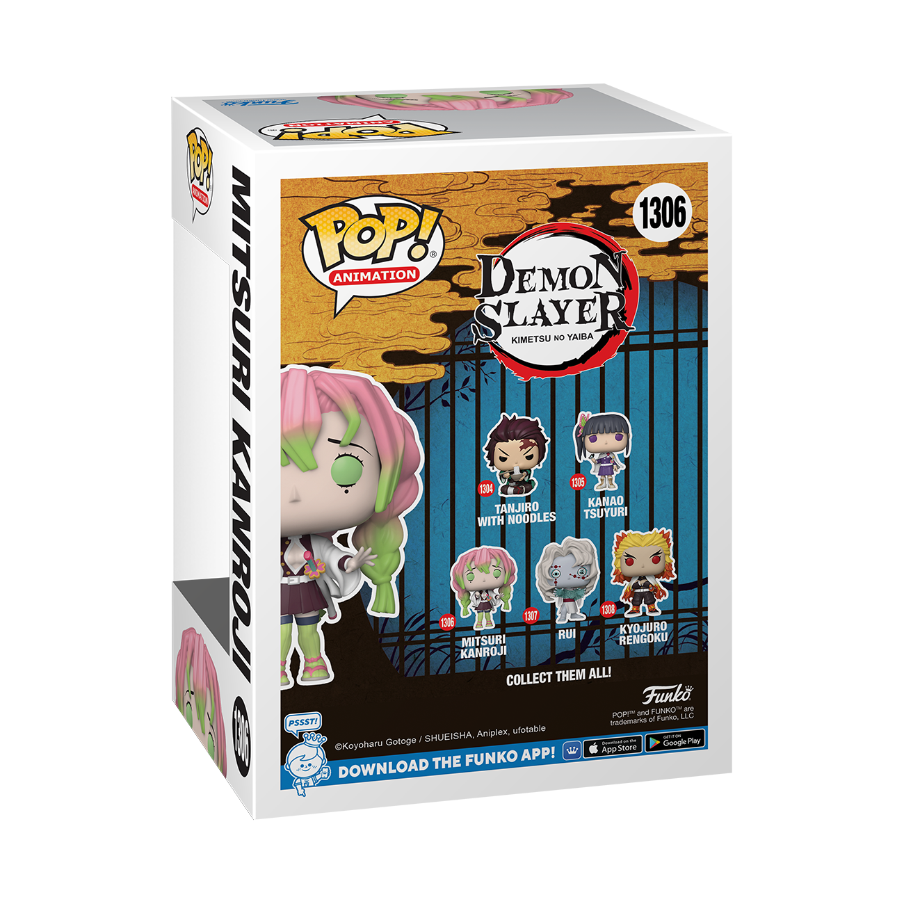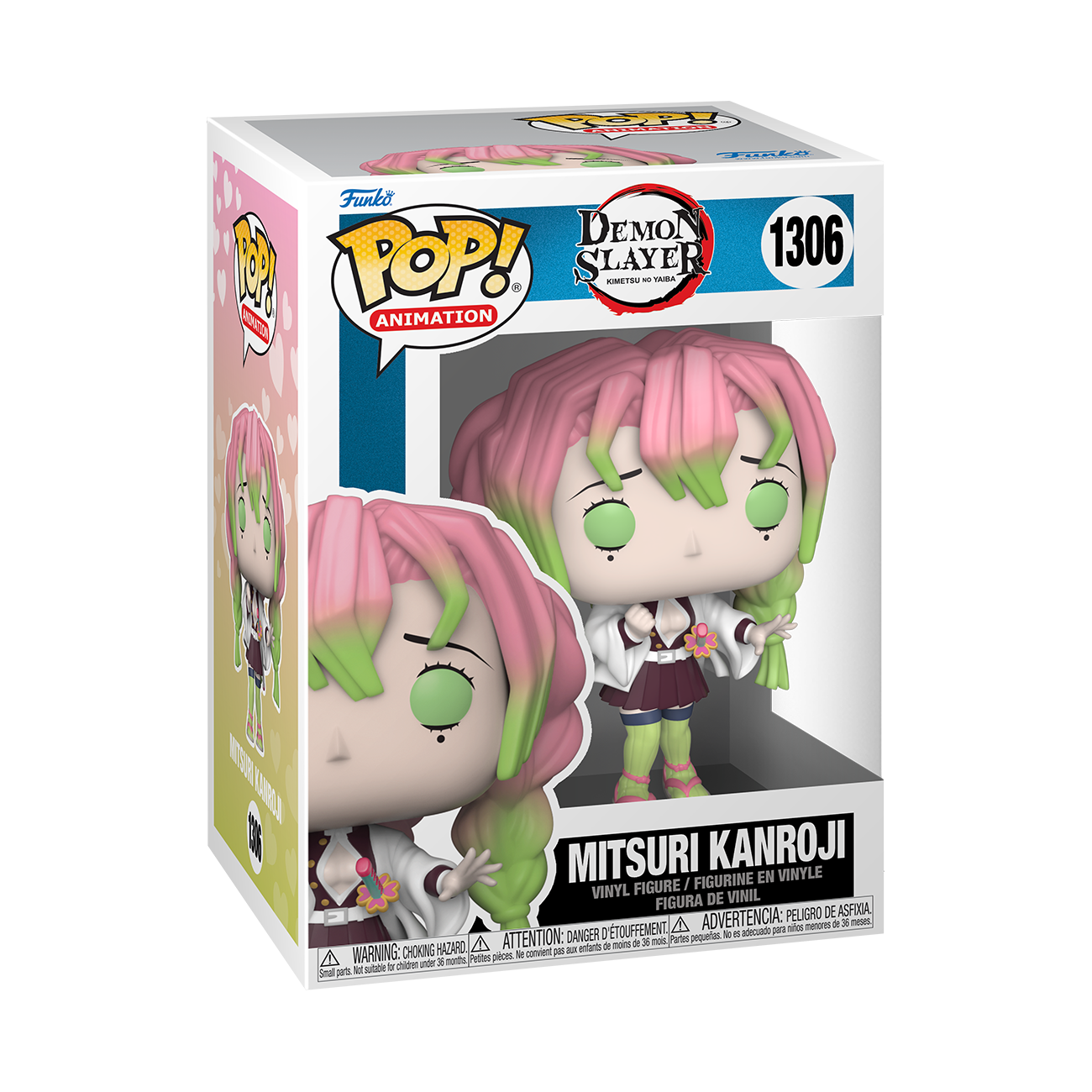 From the Demon Slayer collection, Mitsuri Kanroji, as a Pop! vinyl figure; the figure measures 9 cm and is sent in an illustrated box with a window; discover other figures from the Demon slayer collection and collect them all.