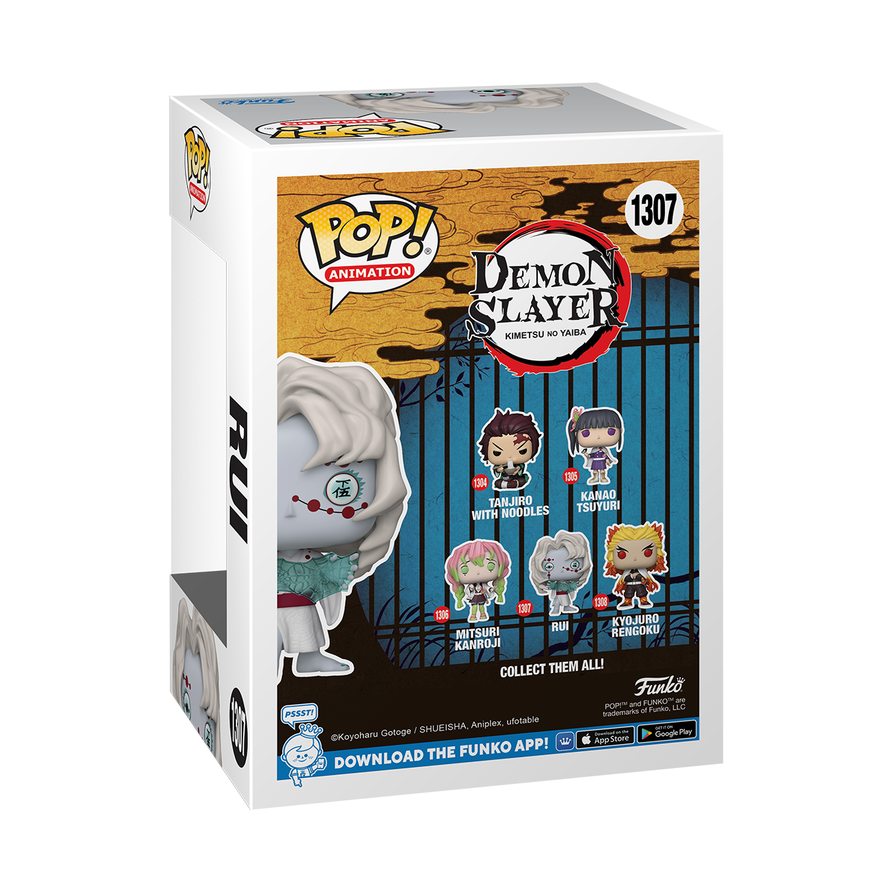 From the Demon Slayer collection, Rui, as a Pop! vinyl figure; the figure measures 9 cm and is sent in an illustrated box with a window; discover other figures from the Demon slayer collection and collect them all.