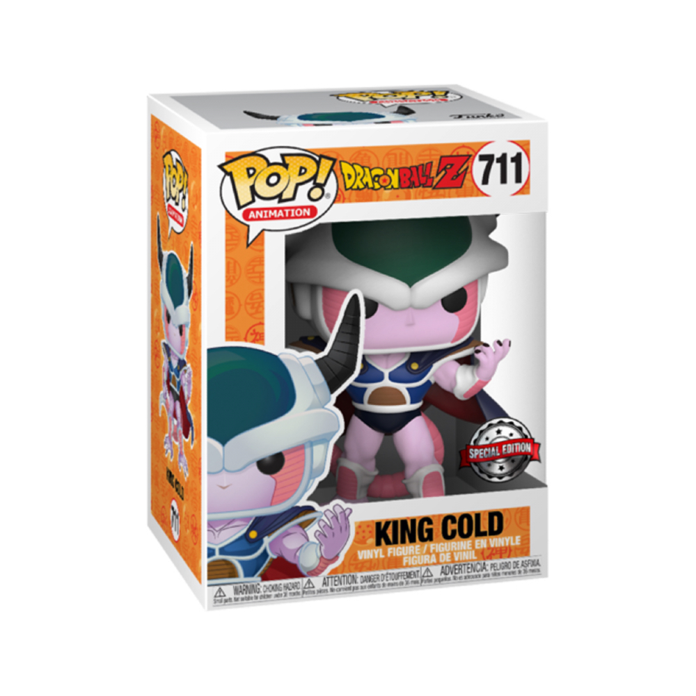 From the Dragon Ball collection, King Cold Ex as a Pop! vinyl figure; the figure measures 9 cm and is sent in an illustrated box with a window; discover other figures from the Dragon Ball collection and collect them all.