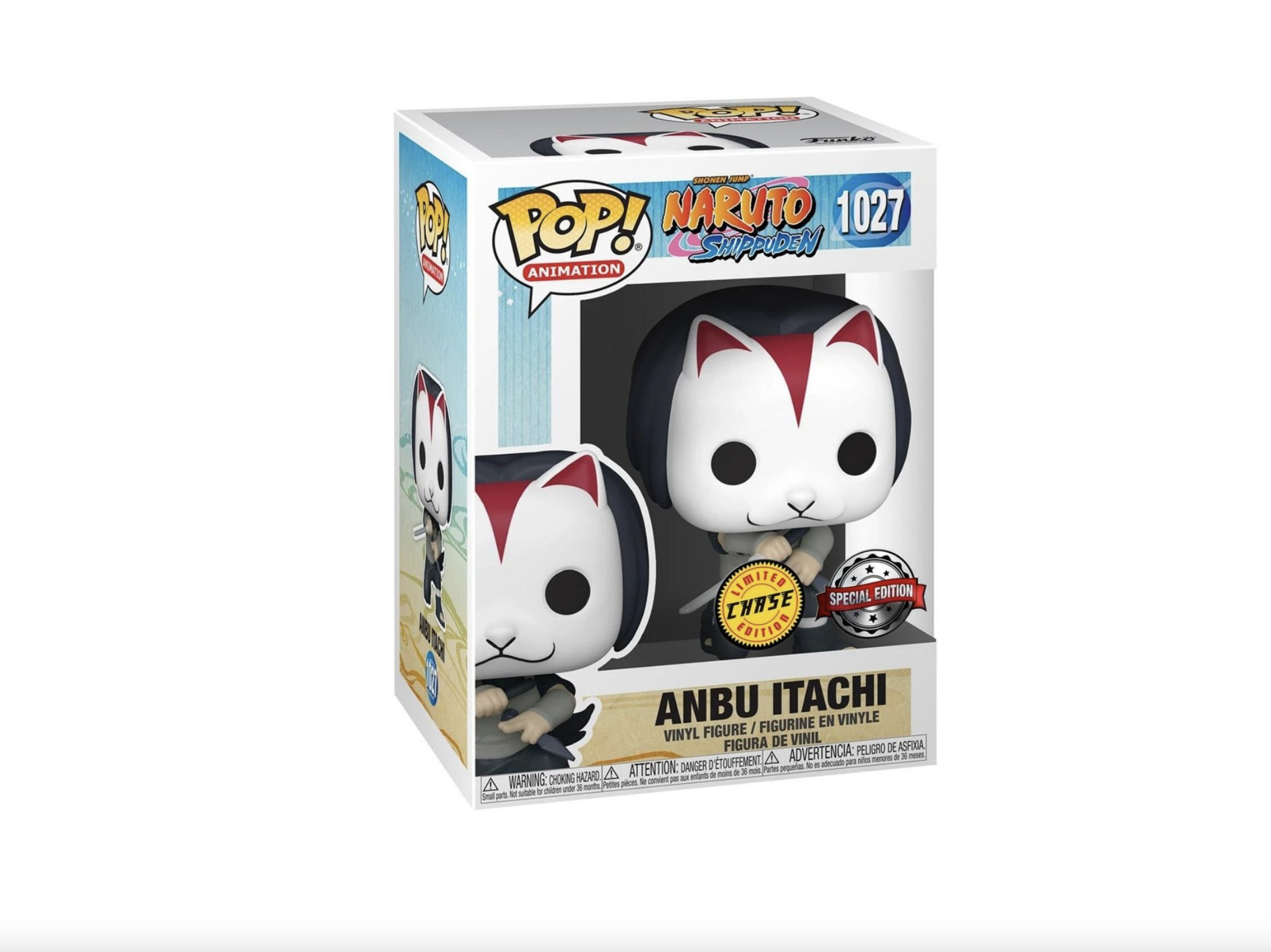 From the Naruto Shippuden collection, Itachi Anbu (Chase) Ex as a Pop! vinyl figure; the figure measures 9 cm and is sent in an illustrated box with a window; discover other figures from the Naruto and collect them all.