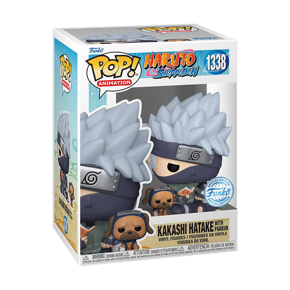 From the Naruto Shippuden collection,Kakashi w/ Pakkun Ex as a Pop! vinyl figure; the figure measures 9 cm and is sent in an illustrated box with a window; discover other figures from the Naruto and collect them all.