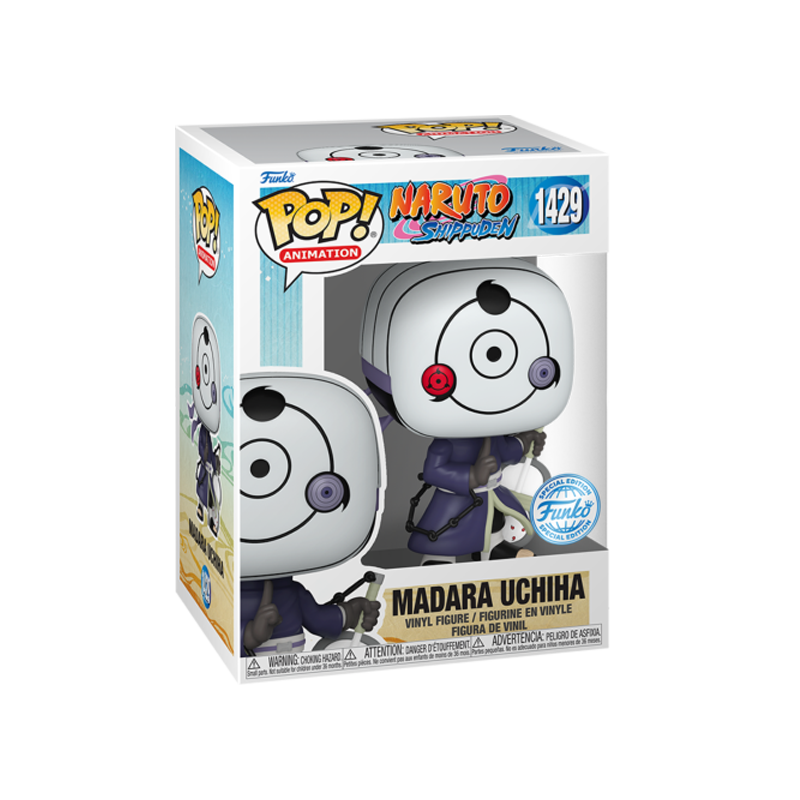 From the Naruto Shippuden collection, Madara Uchiha Masked Ex as a Pop! vinyl figure; the figure measures 9 cm and is sent in an illustrated box with a window; discover other figures from the Naruto and collect them all.