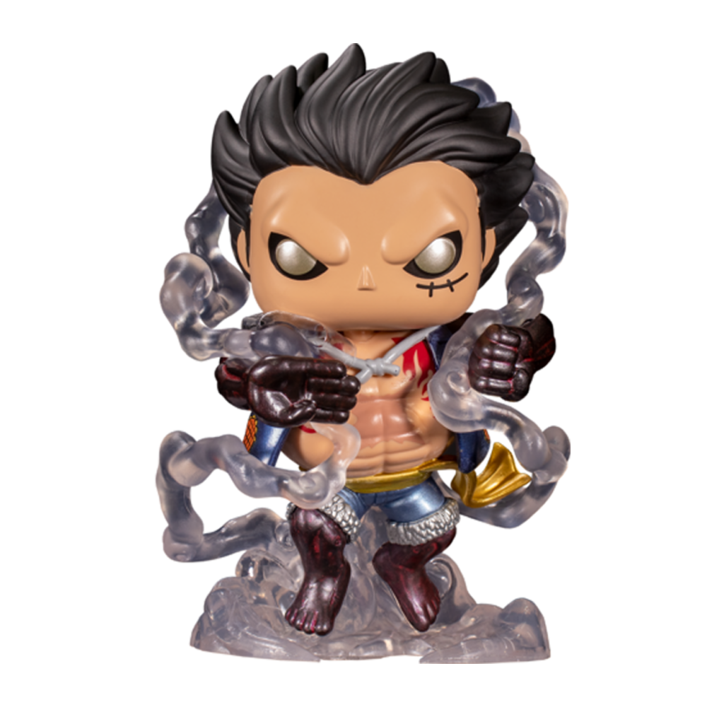 From the One Piece collection, Luffy Gear Four (Metallic) Ex as a Pop! vinyl figure; the figure measures 9 cm and is sent in an illustrated box with a window; discover other figures from the One Piece collection and collect them all.