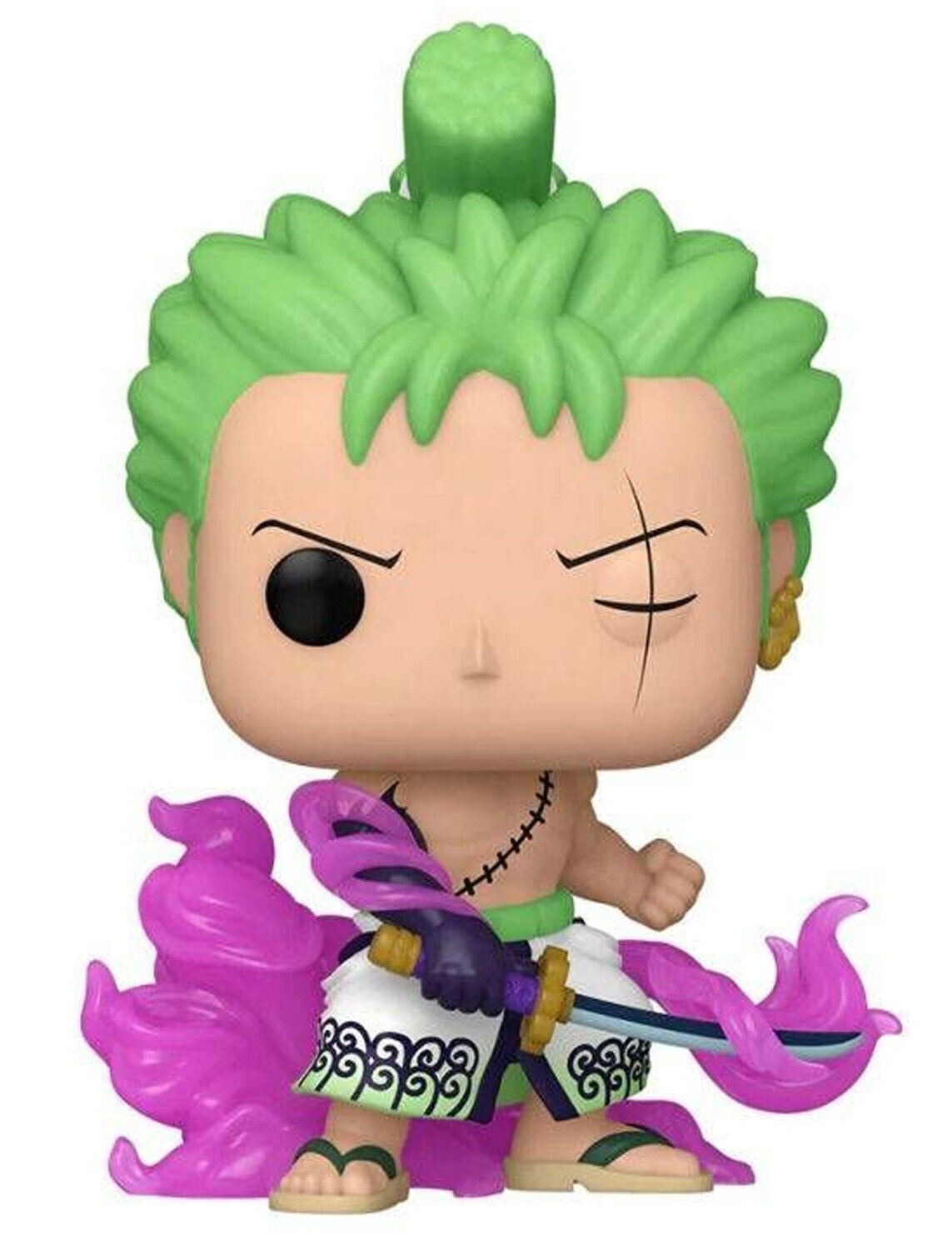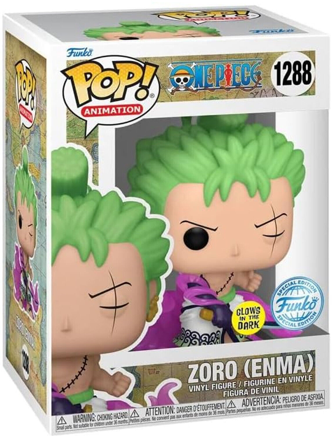 From the One Piece collection,Zoro (Enma)(GITD) Ex as a Pop! vinyl figure; the figure measures 9 cm and is sent in an illustrated box with a window; discover other figures from the One Piece collection and collect them all.