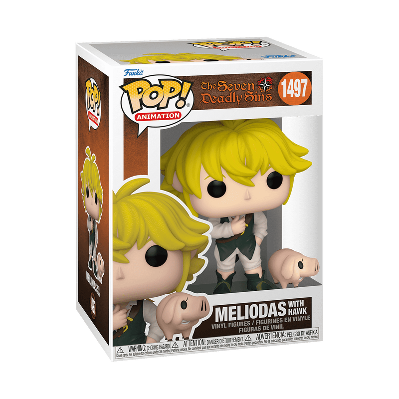 From the The Seven Deadly Sins collection, Meliodas w/ Hawk as a Pop! vinyl figure; the figure measures 9 cm and is sent in an illustrated box with a window; discover other figures from the The Seven Deadly Sins collection collection and collect them all.