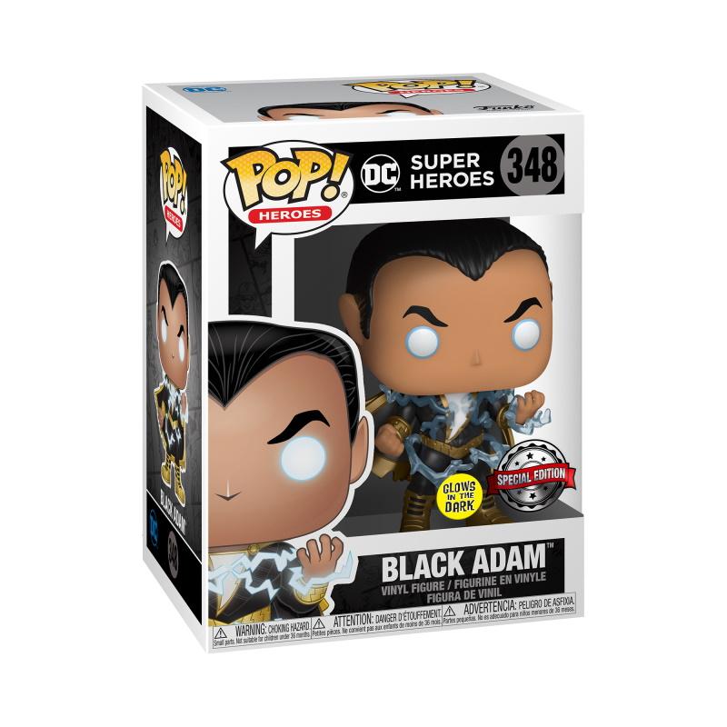 From the DC Comics collection, Black Adam (GITD) Ex as a Pop! vinyl figure; the figure measures 9 cm and is sent in an illustrated box with a window; discover other figures from the DC Comics collection and collect them all.