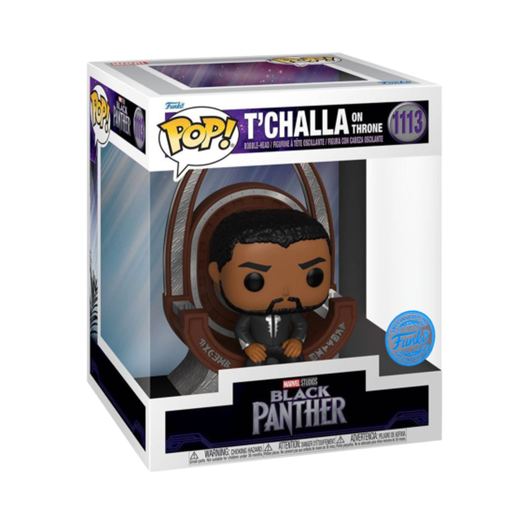From the Marvel collection,T'Challa on Throne Ex as a Pop! vinyl figure; the figure is sent in an illustrated box with a window; discover other figures from the Marvel collection and collect them all.