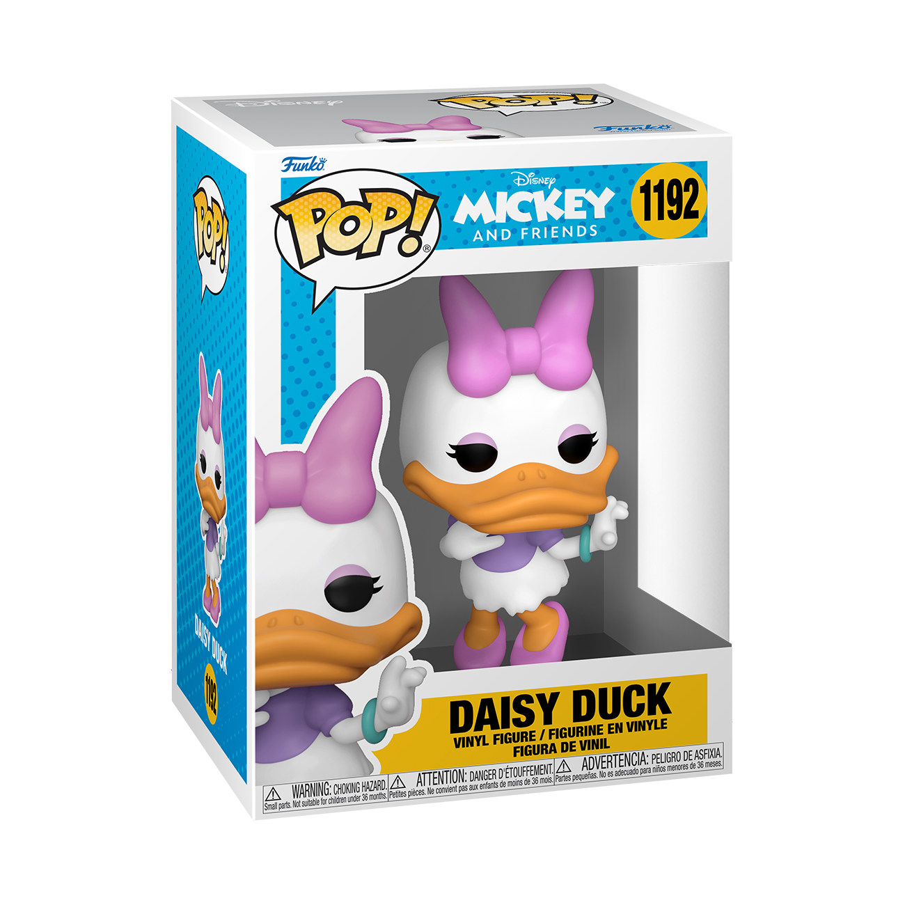 From the Disney Classics collection, Daisy Duck, as a Pop! vinyl figure; the figure measures 9 cm and is sent in an illustrated box with a window; discover other figures from the Disney Classics collection and collect them all.