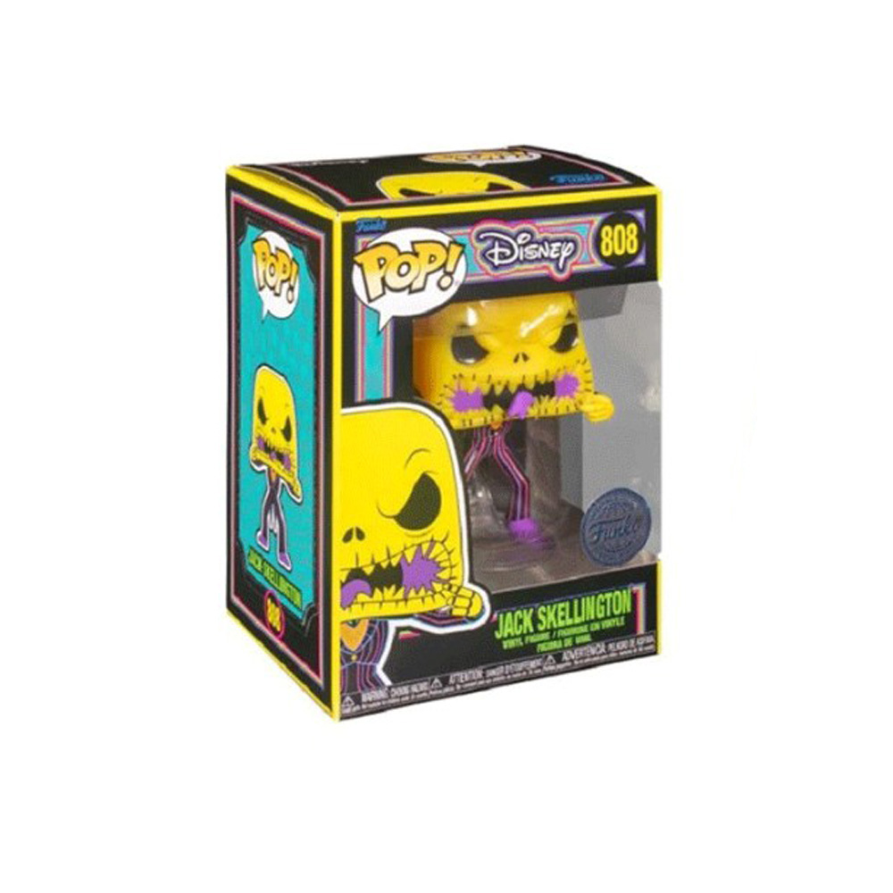 From the Nightmare Before Christmas collection, Jack Scary Face (BLKLT) Ex as a Pop! vinyl figure; the figure measures 9 cm and is sent in an illustrated box with a window; discover other figures from the Black Light collection and collect them all.