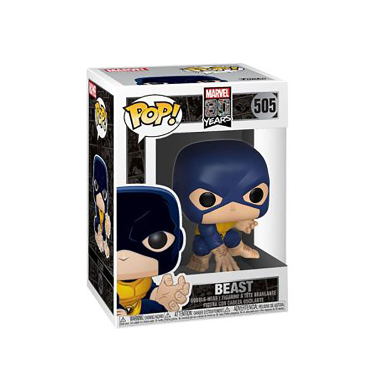 From the Marvel 80th collection, Beast as a Pop! vinyl figure; the figure measures 9 cm and is sent in an illustrated box with a window; discover other figures from the Marvel 80th collection and collect them all.