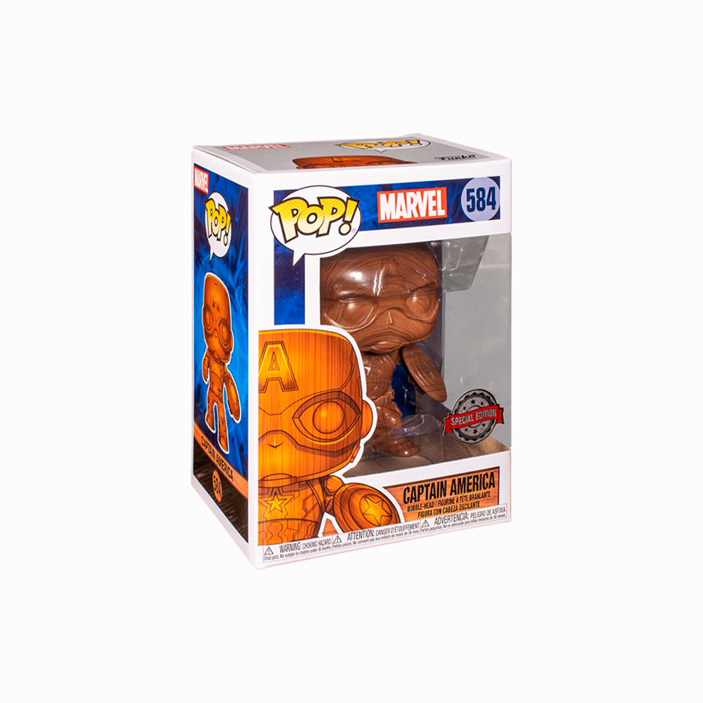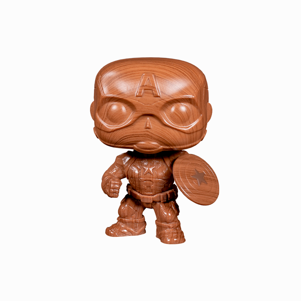 From the Captain America collection, Captain America (Wood) Ex as a Pop! vinyl figure; the figure is sent in an illustrated box with a window; discover other figures from the Captawin America collection and collect them all.