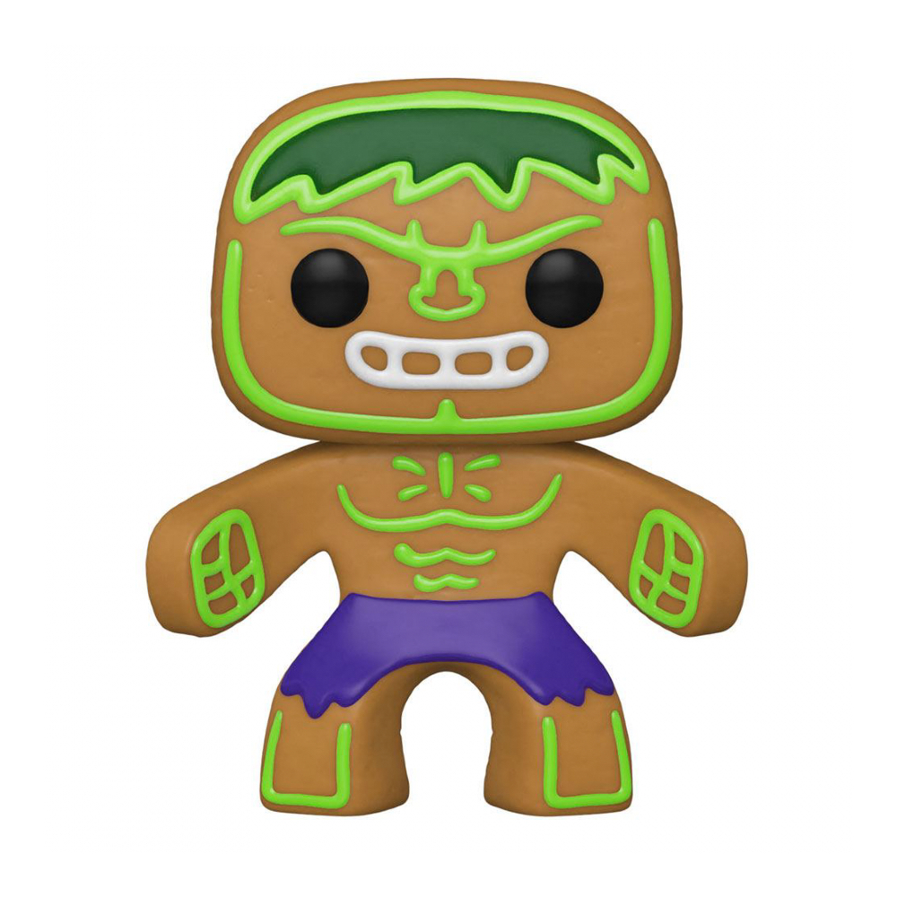 From Marvel Holiday collection, Gingerbread Hulk , as a stylized POP vinyl from Funko! Figure comes in a window display box. Check out the other Marvel Holiday figures from Funko! Collect them all!