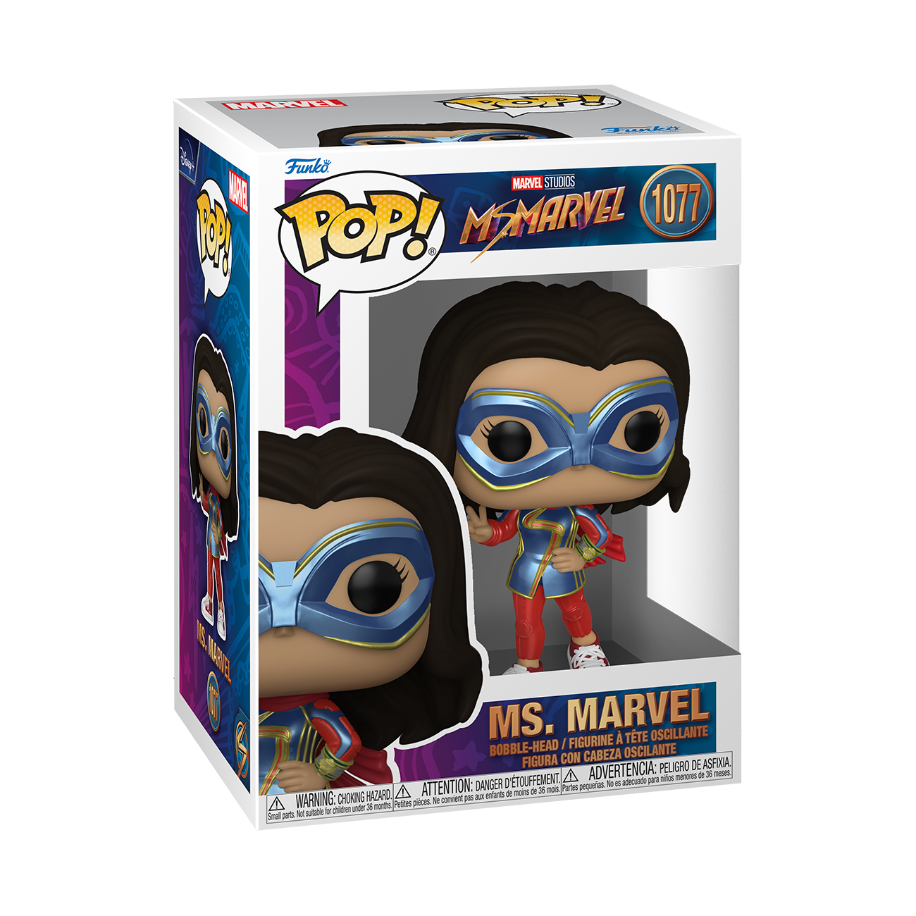 From the Ms. Marvel collection,Ms. Marvel as a Pop! vinyl figure; the figure measures 9 cm and is sent in an illustrated box with a window; discover other figures from the Marvel collection and collect them all.
