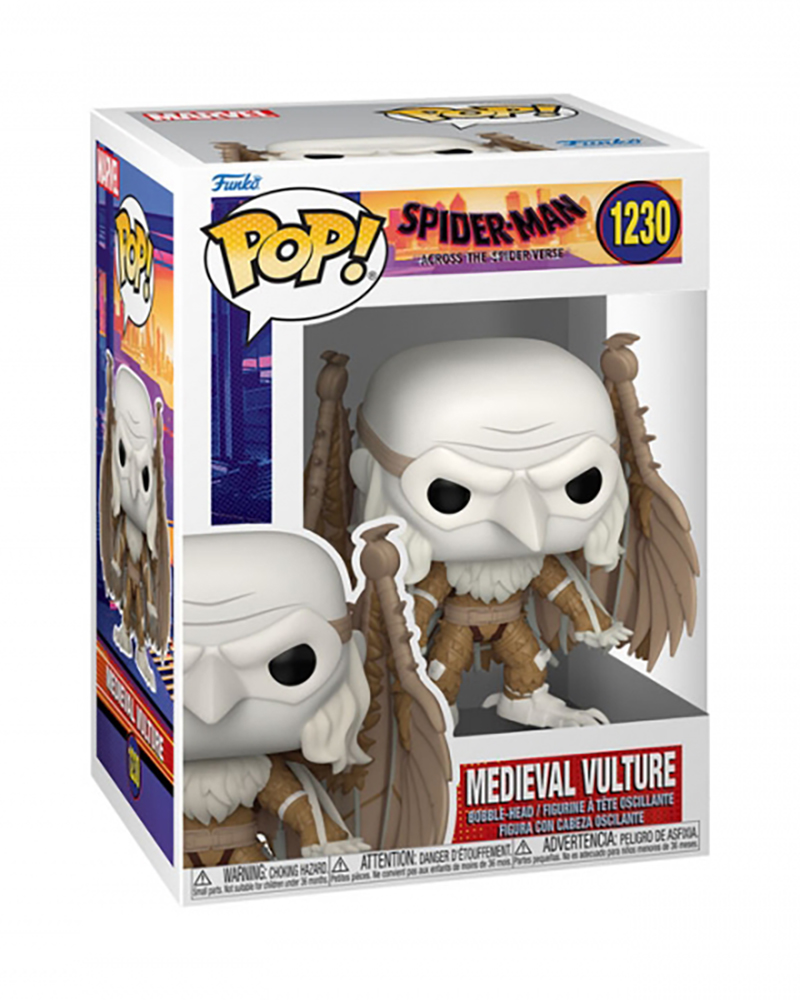 From the Spider-Man Across the Spider-Verse collection,Medieval Vulture as a Pop! vinyl figure; the figure measures 9 cm and is sent in an illustrated box with a window; discover other figures from the Spider-Man Across the Spider-Verse collection and collect them all.