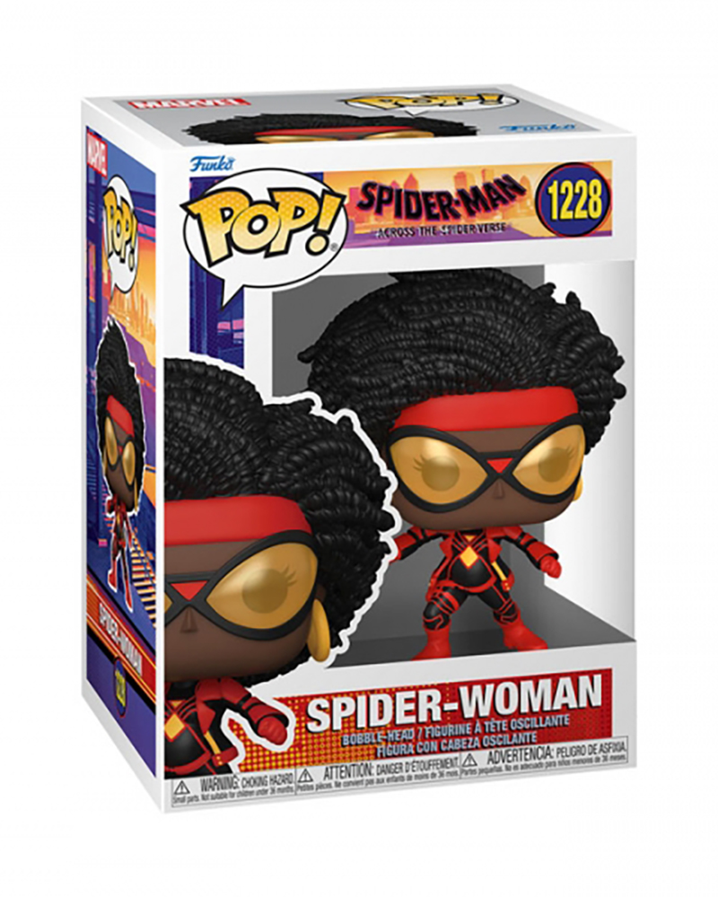 From the Spider-Man Across the Spider-Verse collection,Spider-Woman as a Pop! vinyl figure; the figure measures 9 cm and is sent in an illustrated box with a window; discover other figures from the Spider-Man Across the Spider-Verse collection and collect them all.