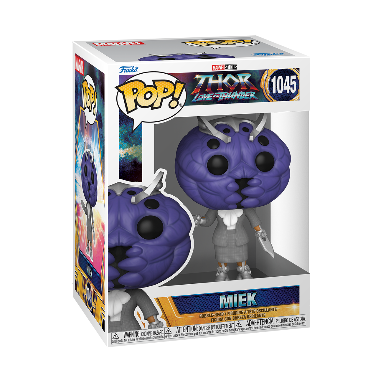 From the Thor Love & Thunder collection,Miek as a Pop! vinyl figure; the figure measures 9 cm and is sent in an illustrated box with a window; discover other figures from the Marvel collection and collect them all.