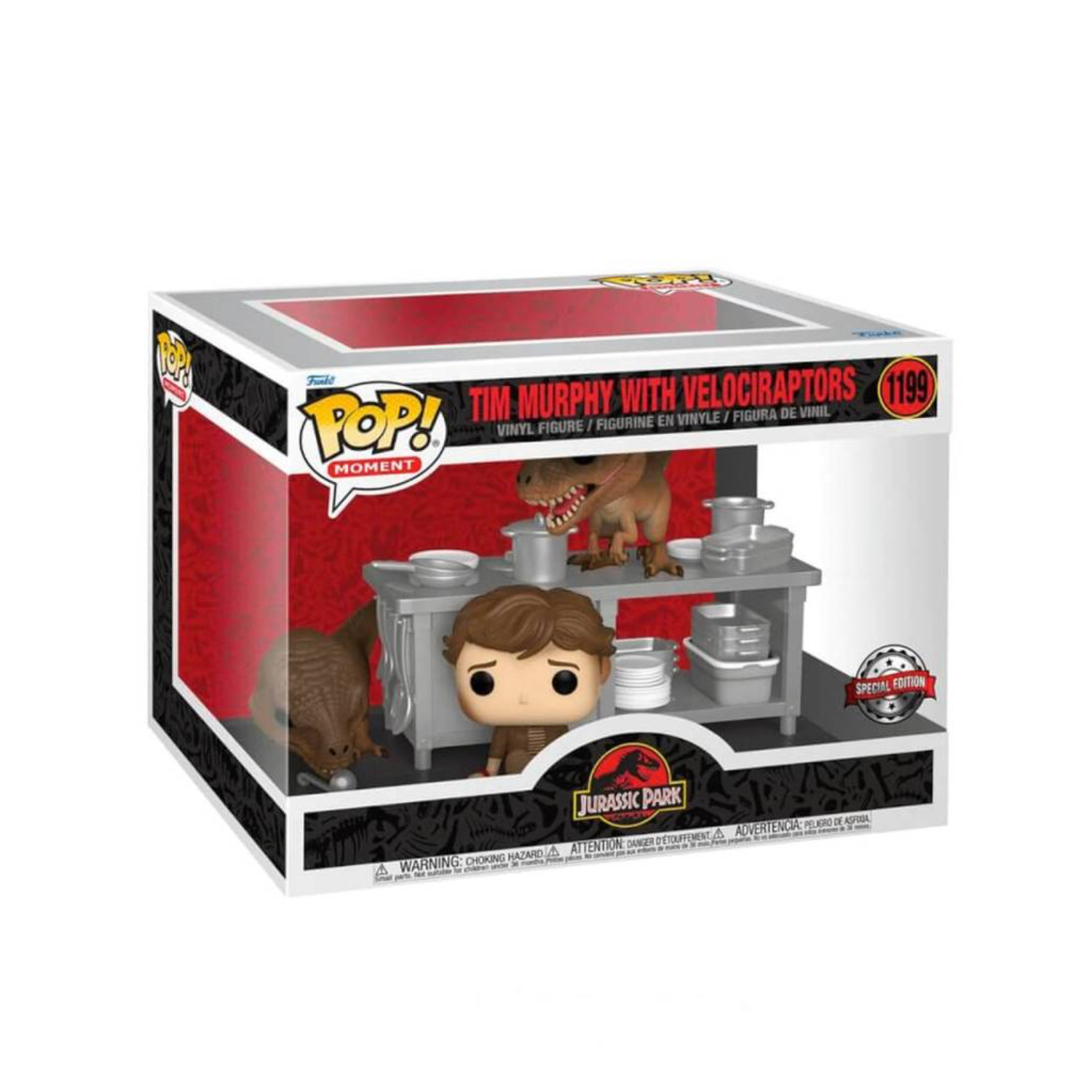 From the Jurassic Park collection, Tim Murphy w/ Velociraptors as a Pop! vinyl figure; the figure is sent in an illustrated box with a window; discover other figures from the Jurassic Park collection and collect them all.