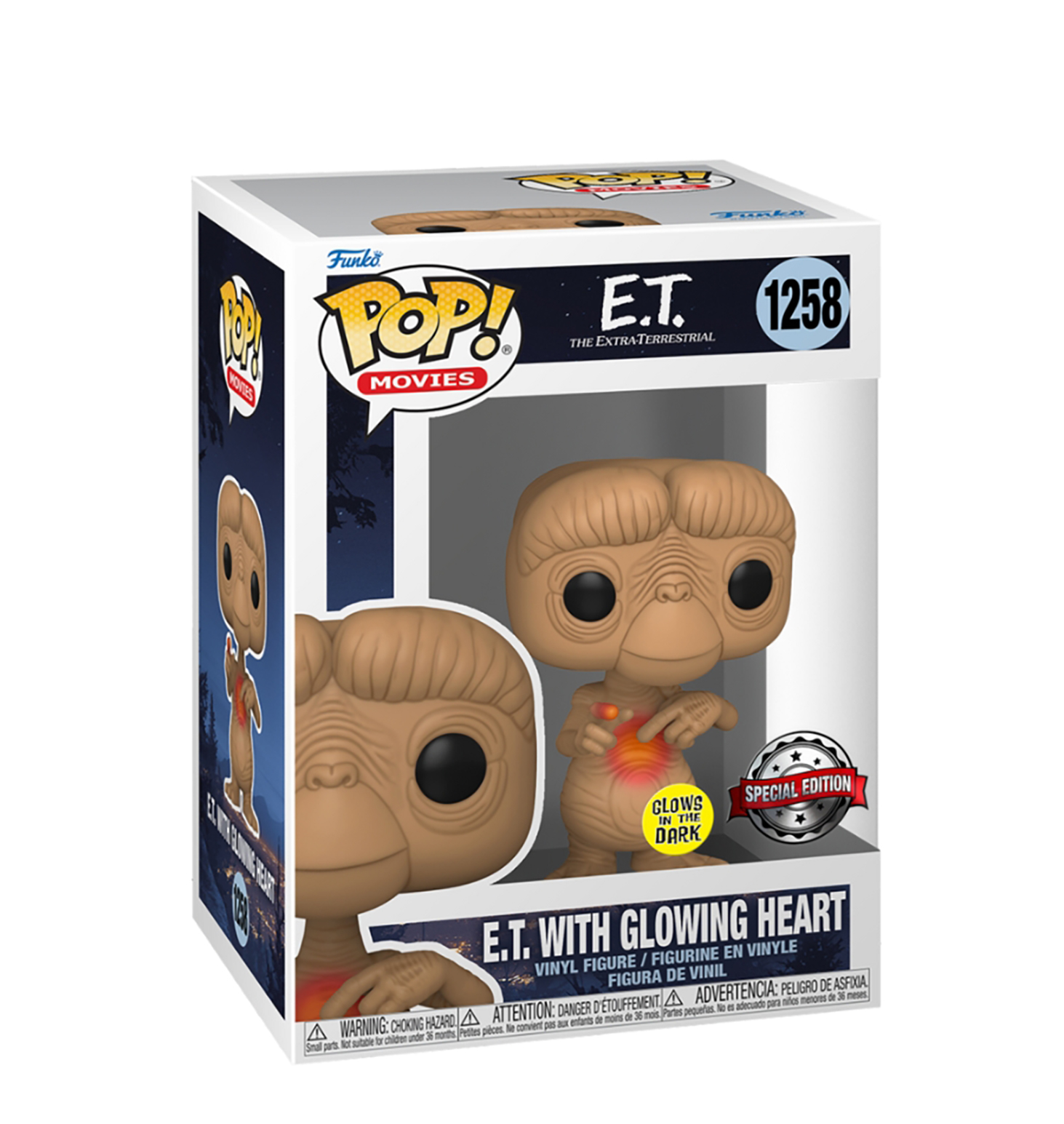 From the E.T. 40th Anniversary collection, E.T. with glowing heart, as a stylized POP vinyl from Funko! Figure comes in a window display box. Check out the other E.T. 40th Anniversary figures from Funko! Collect them all!