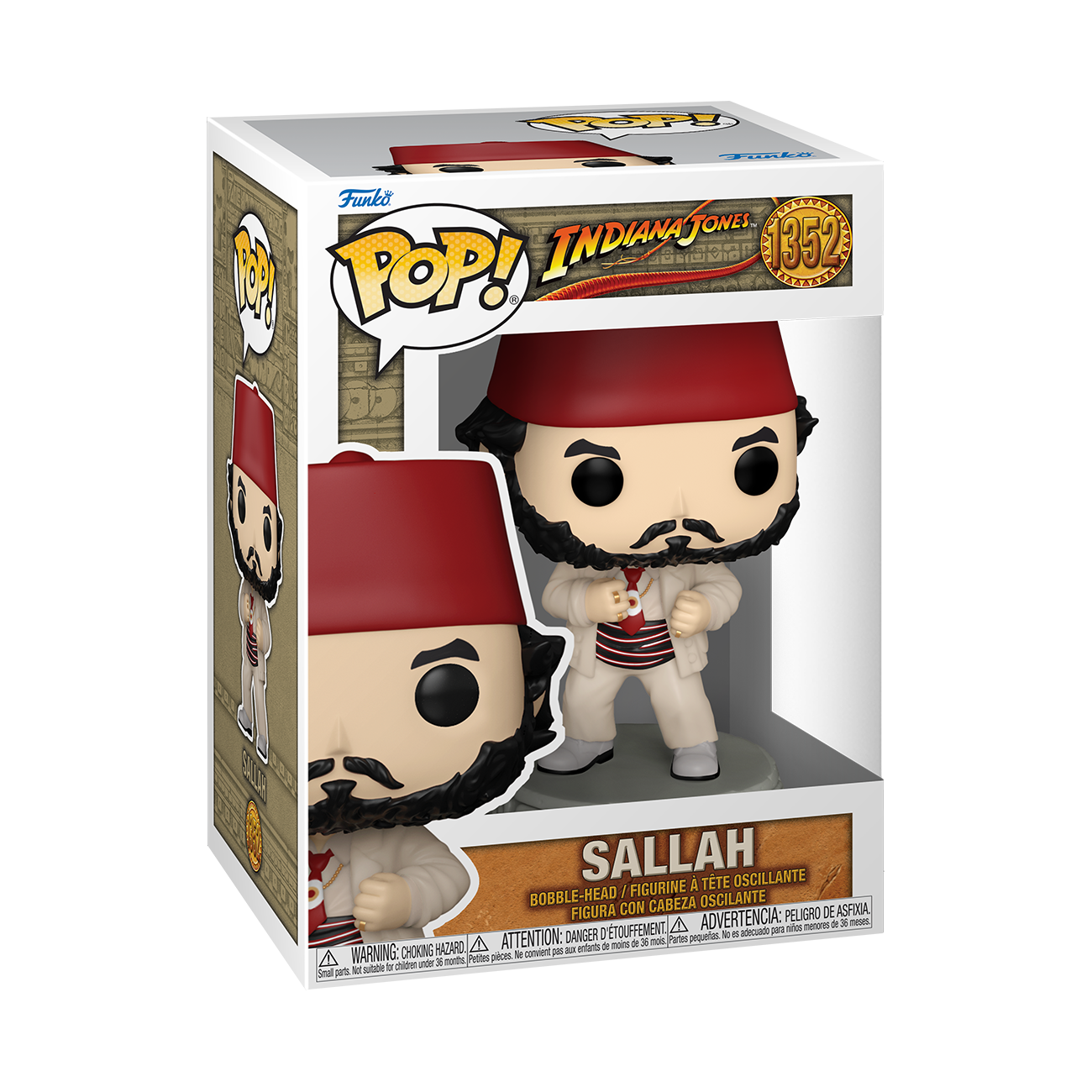 From Indiana Jones Legacy, Sallah as a Pop! vinyl figure; the figure measures 9 cm and is sent in an illustrated box with a window; discover other figures from the Indiana Jones Legacy collection and collect them all.