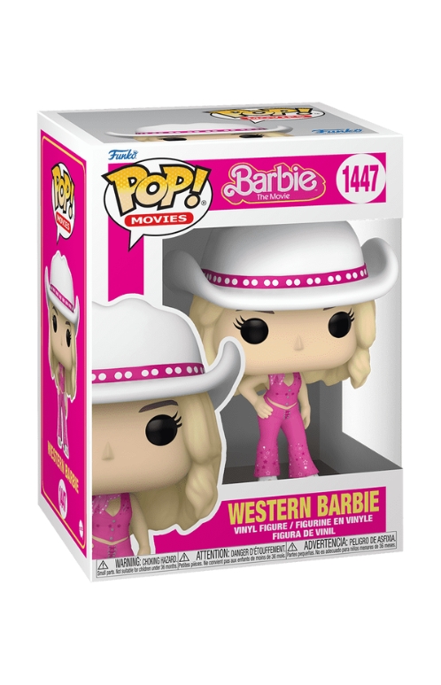 From the Barbie collection, Western Barbie as a Pop! vinyl figure; the figure measures 9 cm and is sent in an illustrated box with a window; discover other figures from the Barbie and collect them all.