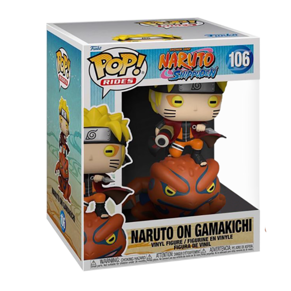 From the Naruto Shippuden collection,Naruto on Gamakichi Ex as a Pop! vinyl figure. Is sent in an illustrated box with a window; discover other figures from the Naruto Collection collection and collect them all.