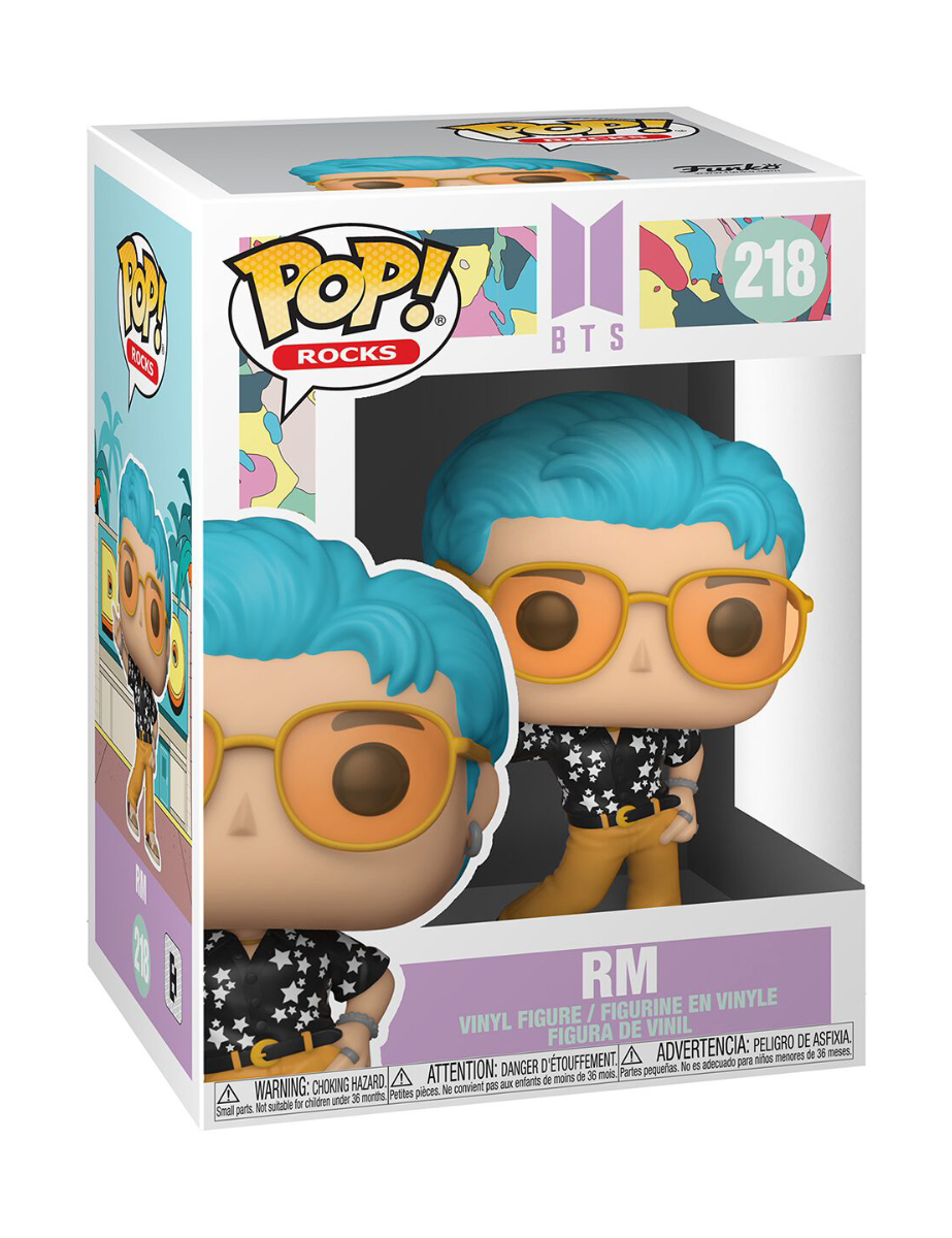 From the BTS collection,RM, as a Pop! vinyl figure; the figure measures 9 cm and is sent in an illustrated box with a window; discover other figures from the BTS collection and collect them all.