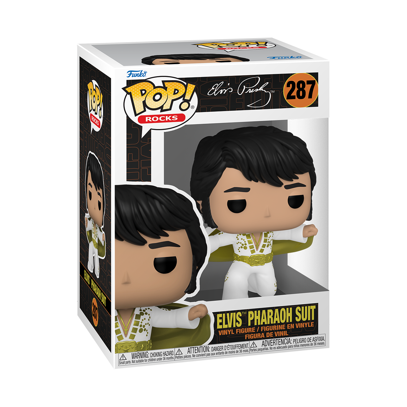 From the Elvis Presley collection,Pharaoh Suit as a Pop! vinyl figure; the figure measures 9 cm and is sent in an illustrated box with a window; discover other figures from the Rocks collection and collect them all.