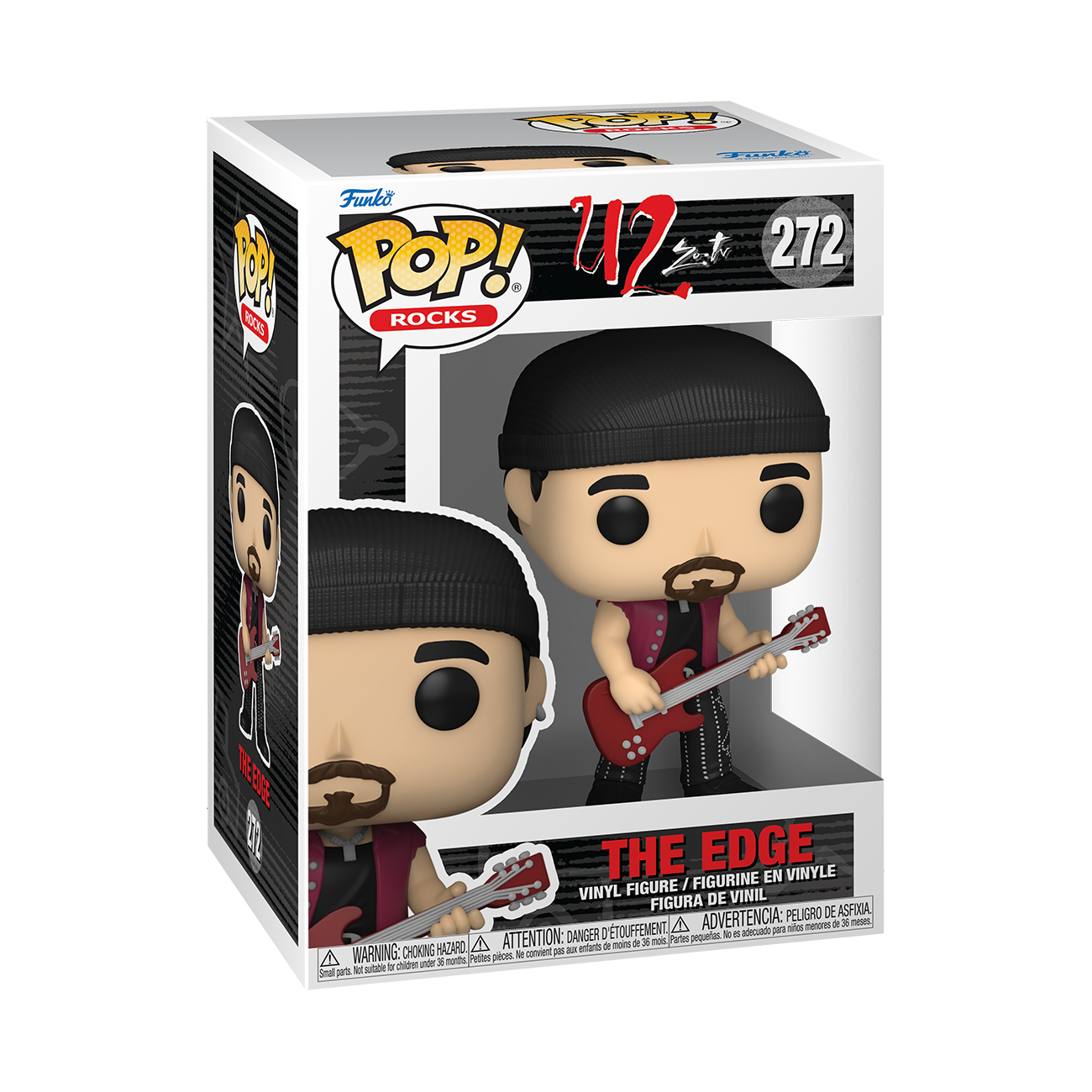 From the U2 collection,The Edge as a Pop! vinyl figure; the figure measures 9 cm and is sent in an illustrated box with a window; discover other figures from the U2 collection and collect them all.
