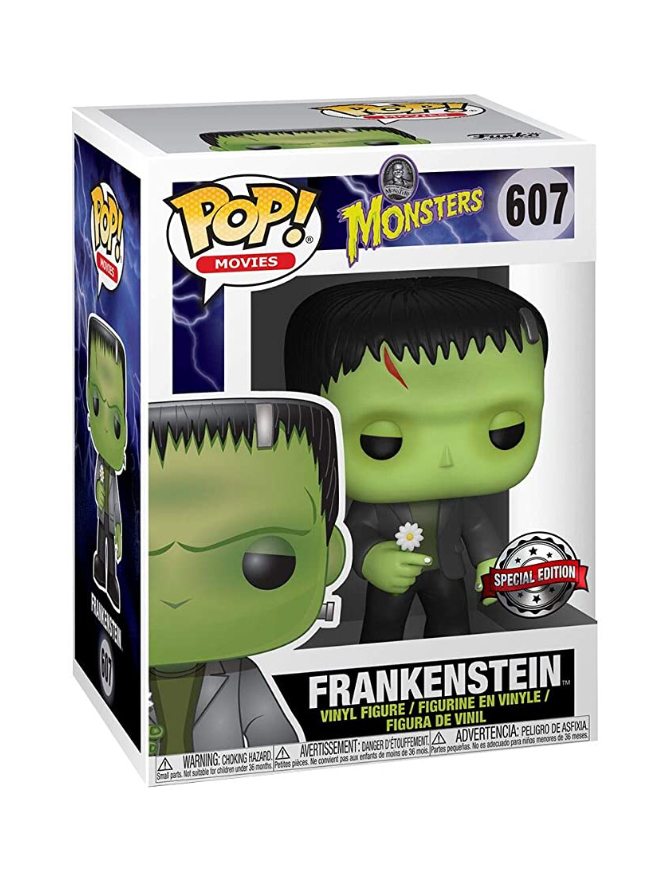 From the Universal Monsters collection, Frankenstein w/ Flower Ex (GITD) as a Pop! vinyl figure; the figure measures 9 cm and is sent in an illustrated box with a window; discover other figures from the Universal Monsters collection and collect them all.