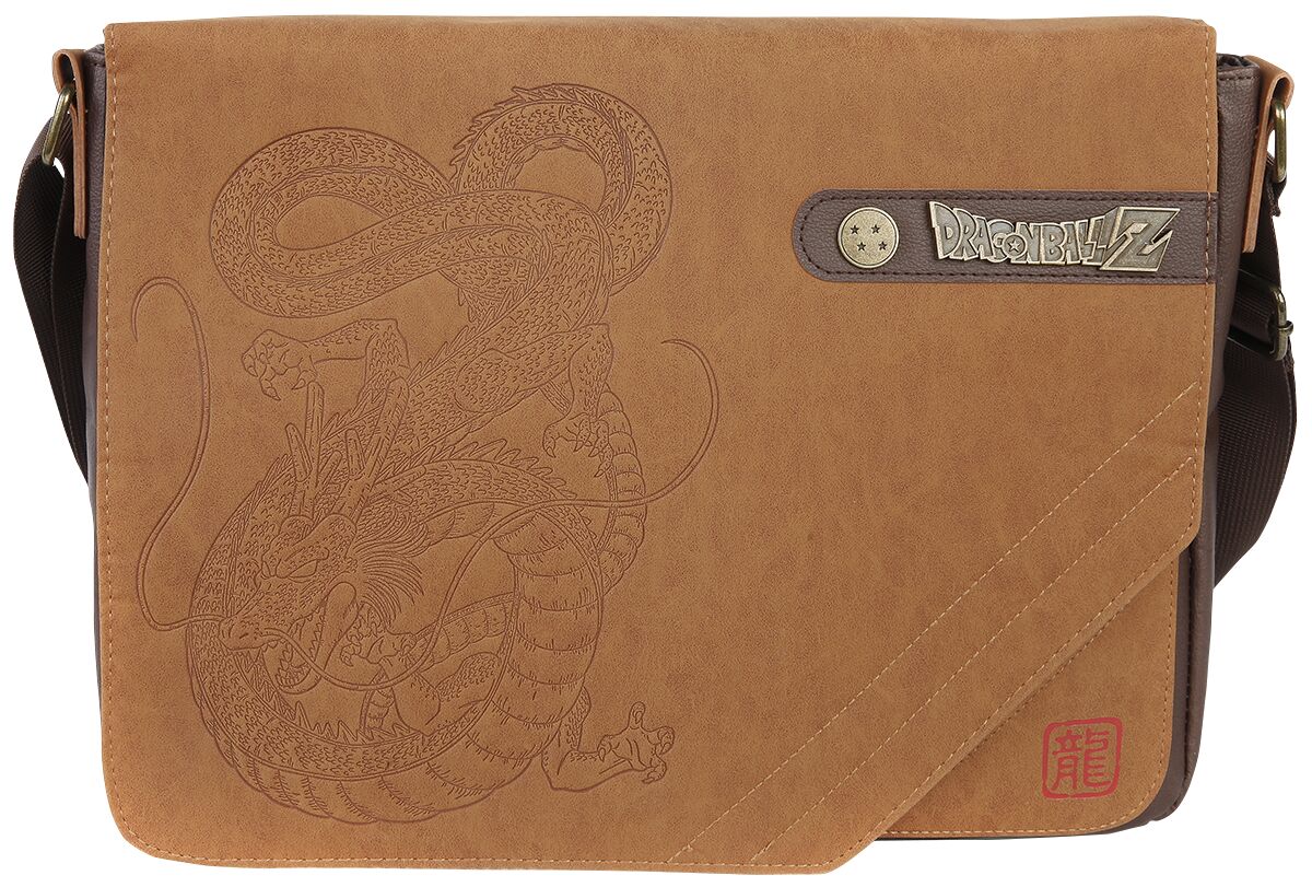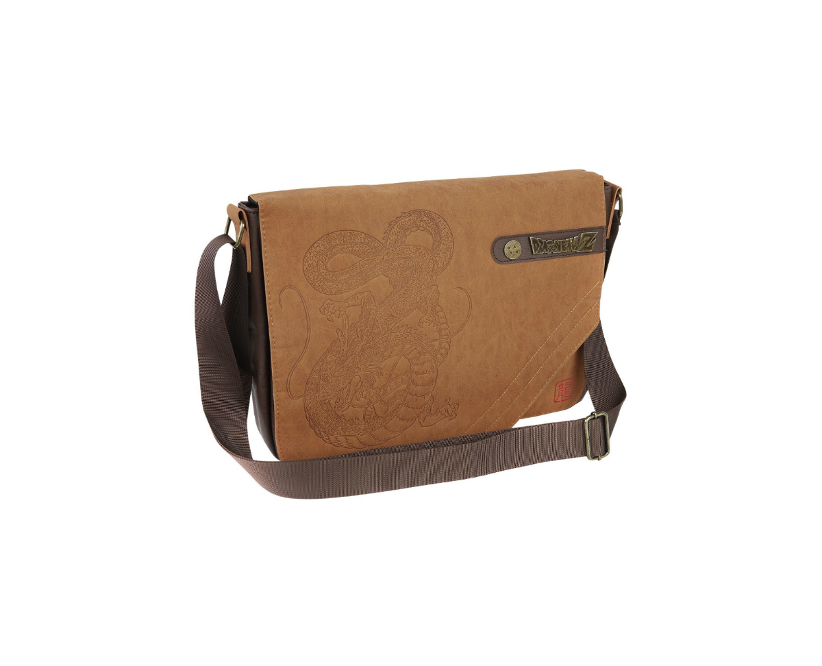 Increíble bandolera con un discreto pero muy detallado dibujo del dragón Shenron y con el logo de Dragon Ball reproducido en un metal envejecido.