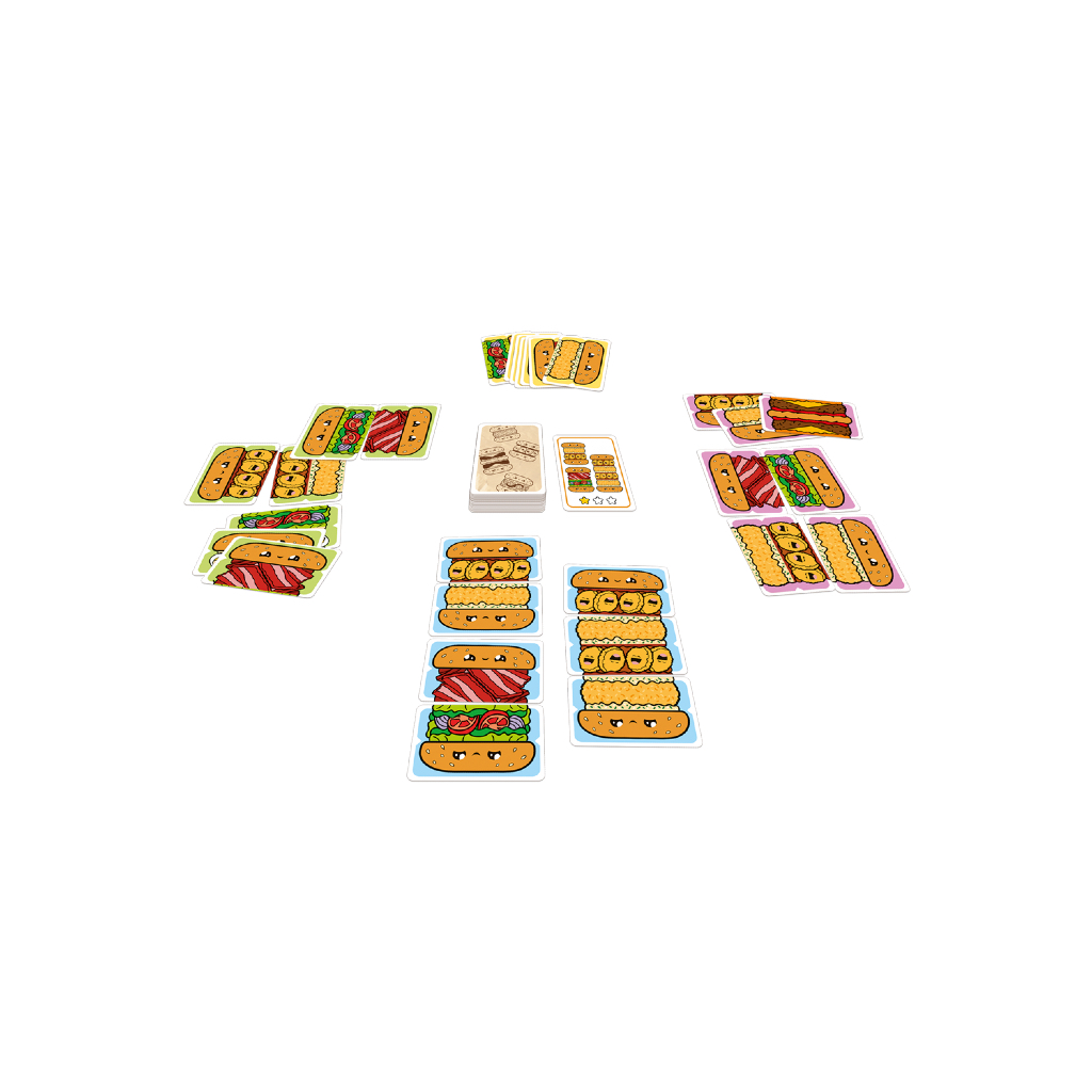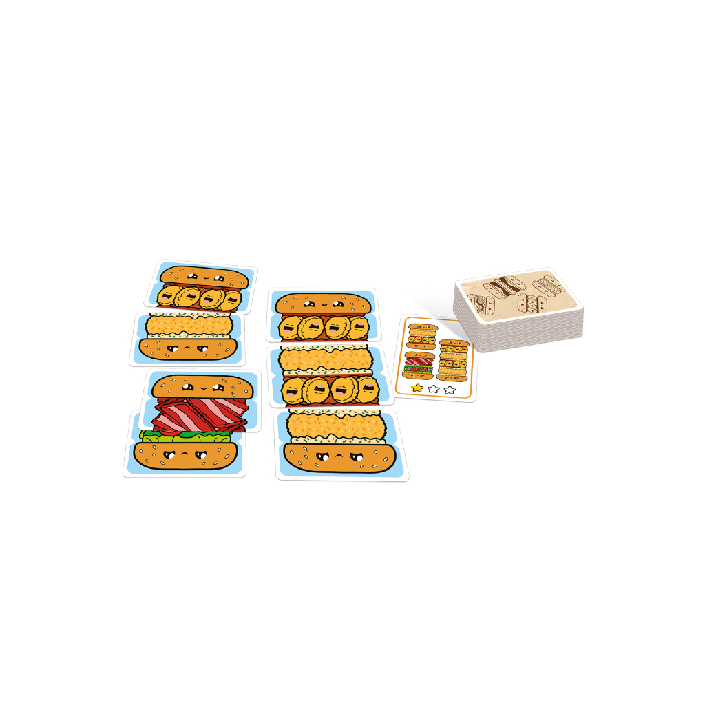 ¿Quién se convertirá en el pro de las hamburguesas? ¡Dales la vuelta a tus cartas y solápalas unas con otras para reproducir la hamburguesa del pedido lo más rápido posible!
