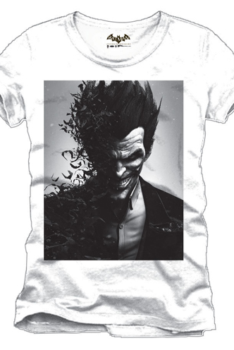 CAMISETA OFICIAL: BATMAN ARKHAM ORIGINS "JOKER" BLANCA.
