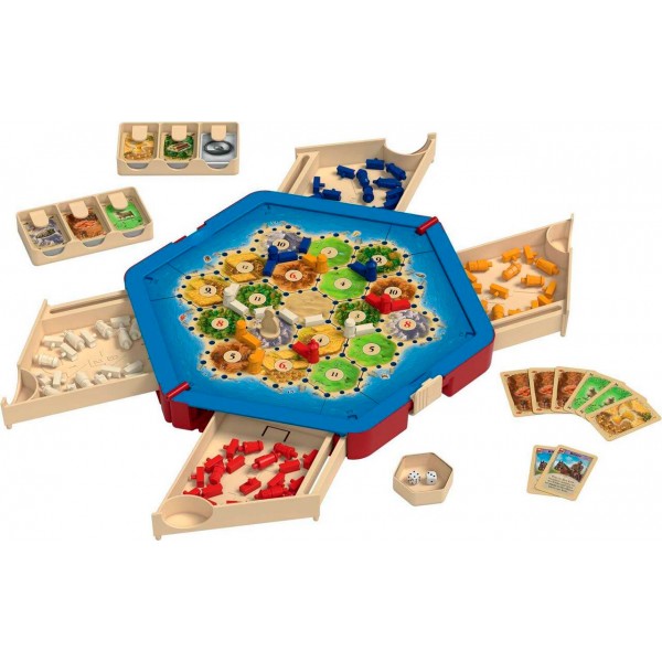 Esta práctica edición de viaje está diseñada como un cómodo maletín que permite ahorrar espacio y desplegar el tablero de juego de modo que las carreteras, poblados y ciudades queden perfectamente encajados en su lugar Cabe perfectamente en una maleta y sin embargo contiene todos los componentes de las versiones “grandes” de Catan. Esta versión incluye, además, una variante de juego para dos jugadores.