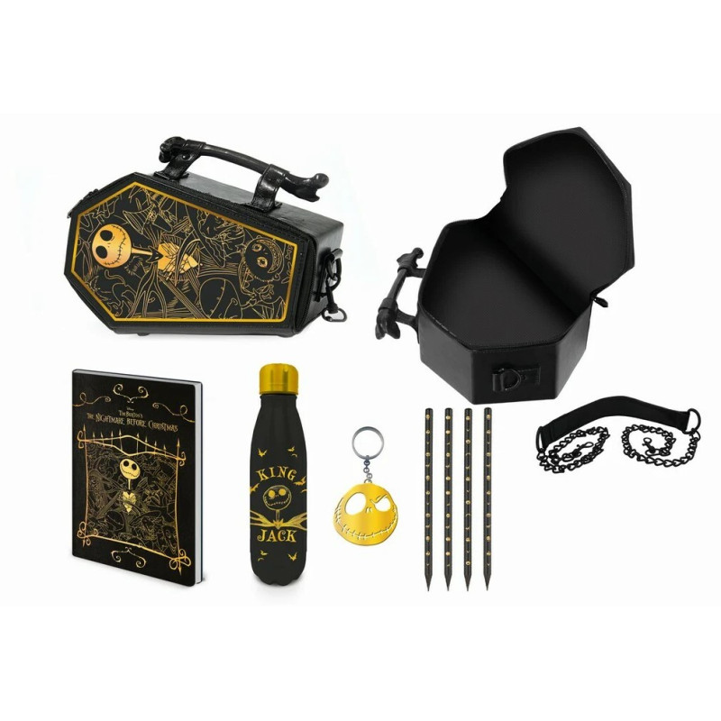 El pack incluye un cuaderno A5 premium de tapa dura, una botella metálica de 350 ml., un llavero metálico con la carita de Jack y 4 lápices con un diseño y un packaging deluxe.