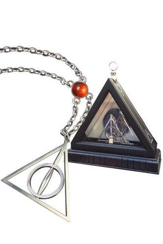 El triangulo es un símbolo que hace referencia a las reliquias de la muerte: La Varita de Saúco, la Piedra de Resurrección y la Capa de Invisibilidad.