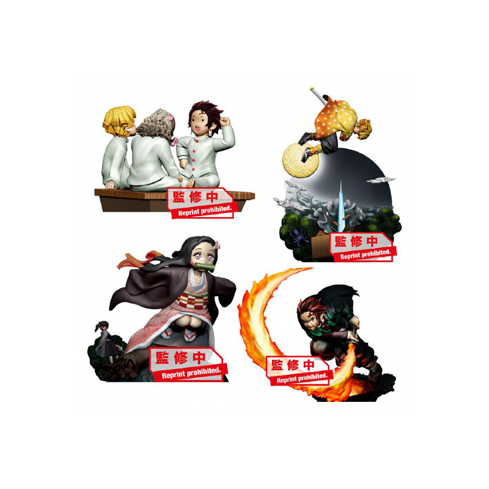 Surtido de 4 Figuras aleatorias de la serie animada 'Demon Slayer: Kimetsu no Yaiba’. Cada figura tiene un tamaño de 8 cm.