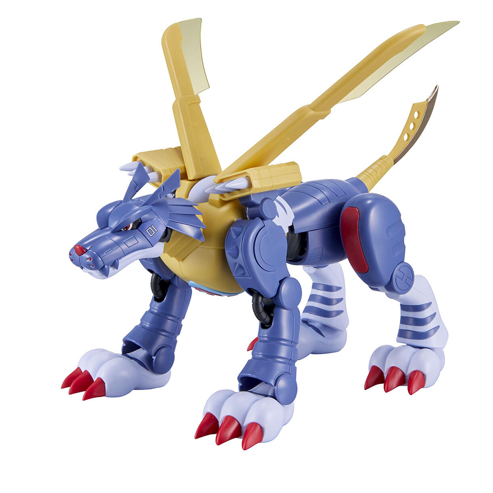 Bandai Hobby presenta el model kit para montar la figura articulada de Metalgarurumon de la popular serie "Digimon". Este model kit puede ensamblarse sin necesidad de pegamento.