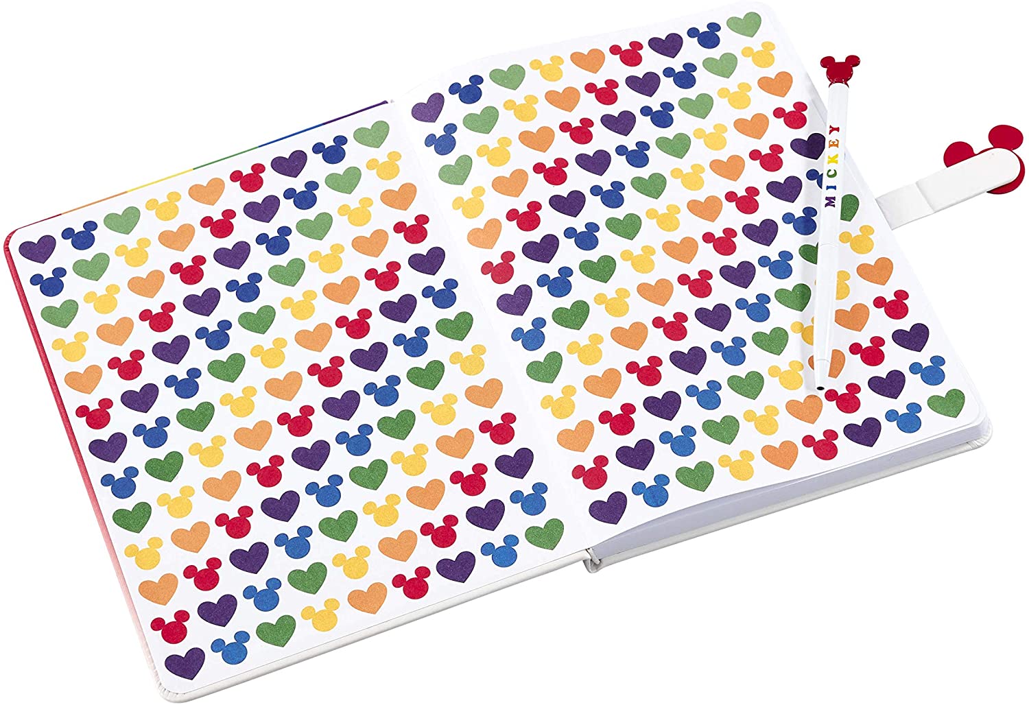 - Estampado del icono de Mickey y corazones de varios colores en las cubiertas interiores