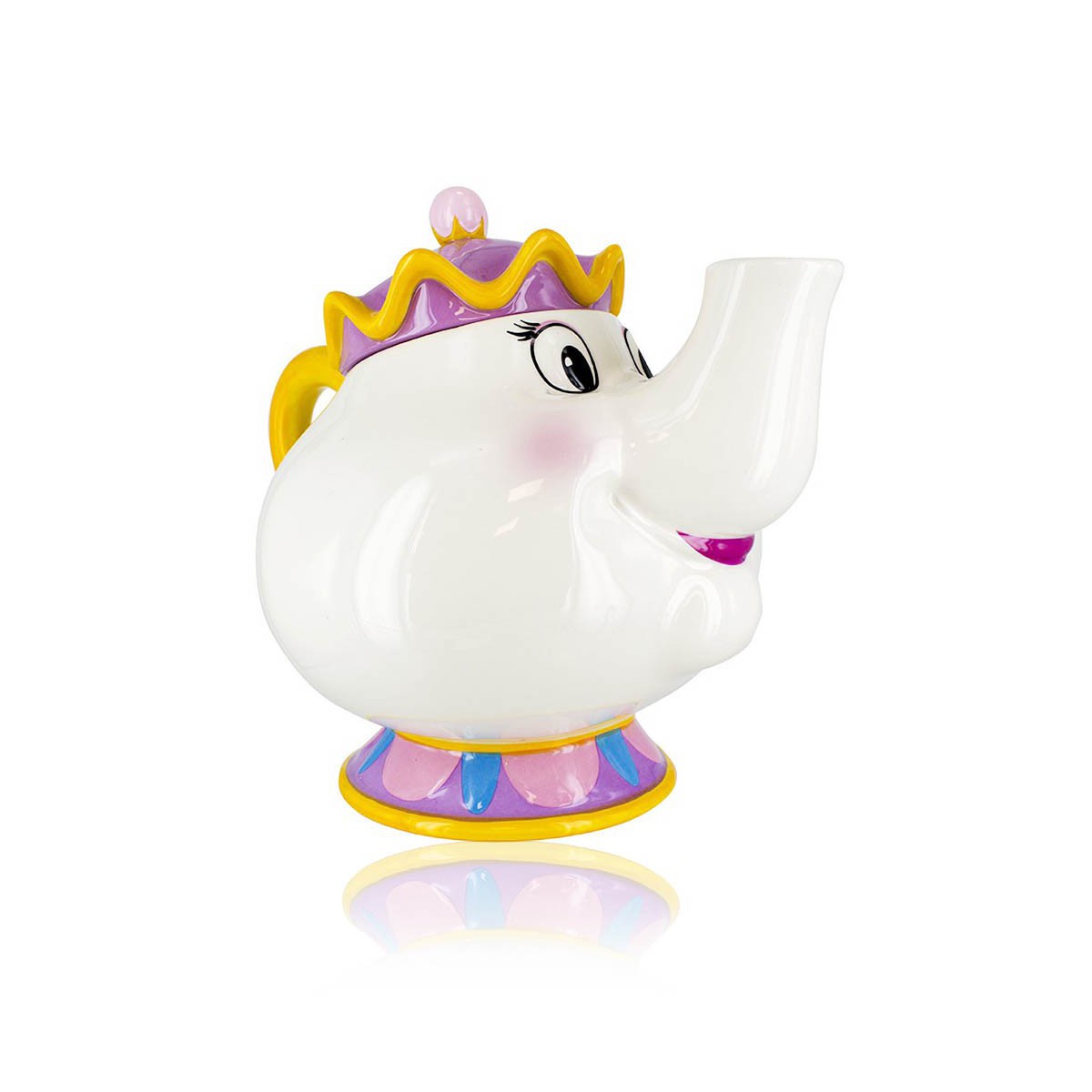 Una magnífica y gigantesca tetera que tiene los detalles en relieve, está pintada primorosamente y capta tan bien la esencia de Potts que parece que te estuviera mirando de verdad. Se trata de un producto del prestigioso fabricante inglés Paladone, con licencia oficial de Disney.