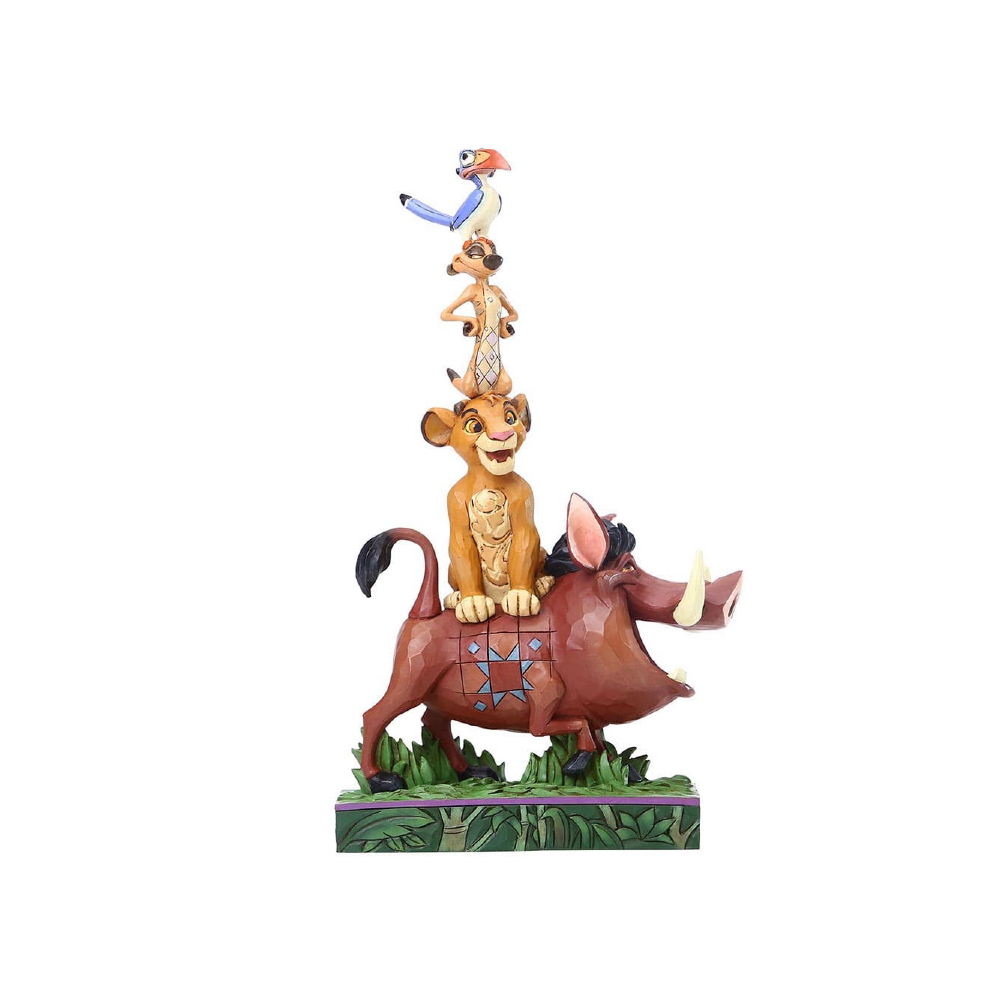 Simba no puede esperar a ser rey, imitando la clásica escena musical de El Rey León, Pumba, Simba, Timón y Zazu crean una pila de amigos. En el estilo clásico de Jim Shore, estos cuatro soportan sonrisas brillantes, y el peso de cada uno.