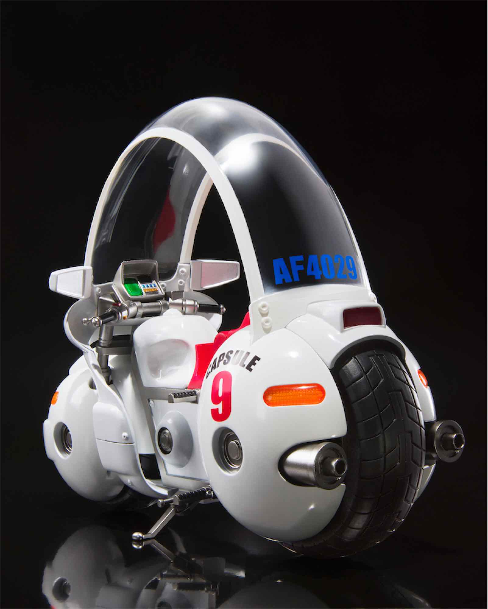 Esta réplica mide unos 17,5 cm de alto y está hecha con partes de PVC y partes de metal. Incluye una base soporte para su exposición con el logo de la Capsule Corp. También incluye: una figura a escala, no articulada, de Goku, una falda opcional y un par de manos alternativas para la SH Figuarts de Bulma (*la figura de Bulma NO ESTÁ INCLUIDA y se vende aparte)