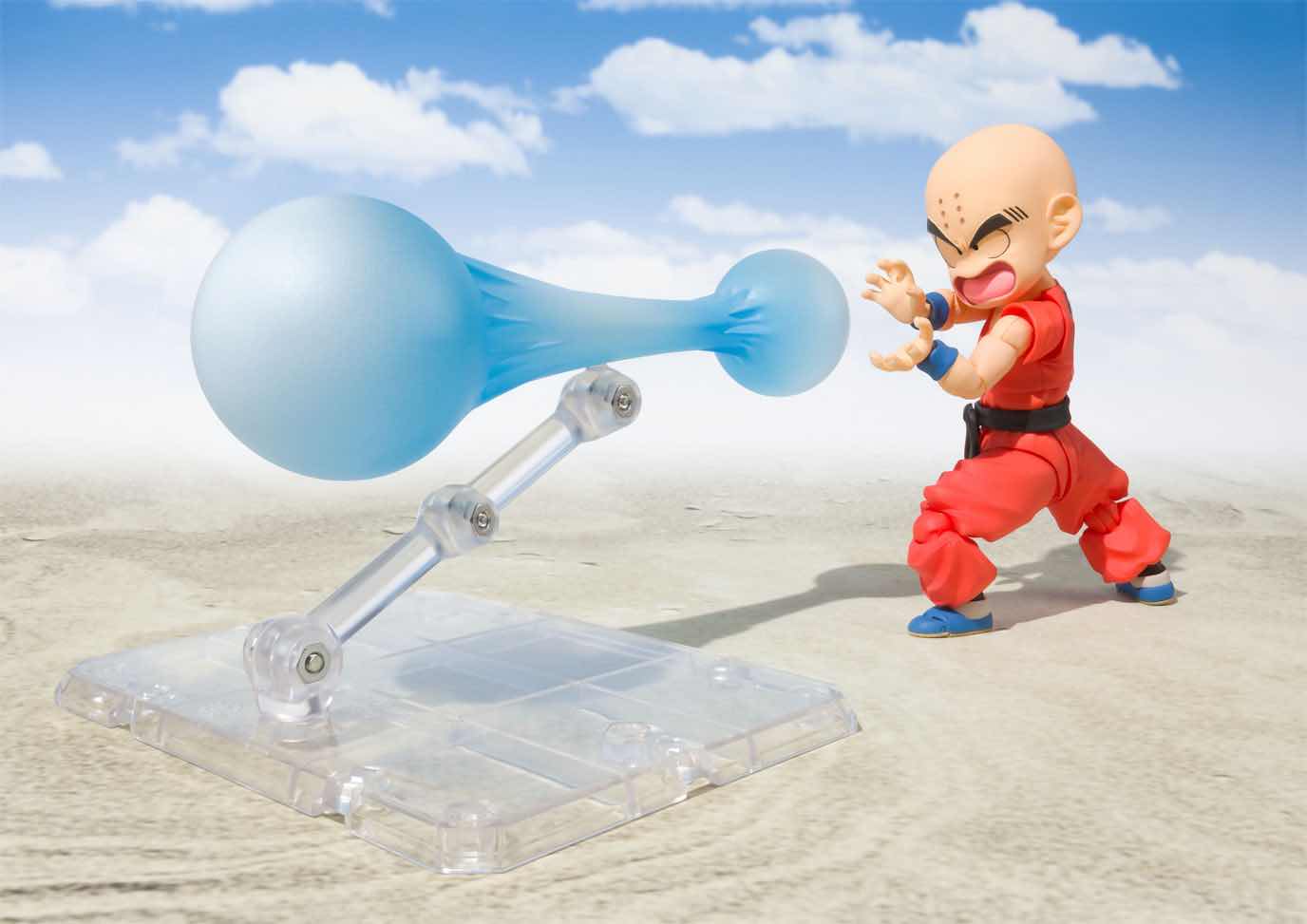 Tamashii Nations presenta para la colección S.H. Figuarts otra figura de la serie "Dragon Ball". En esta ocasión se trata de la figura de Krilin niño. Está hecha en PVC y mide unos 10 cm de alto e incluye 4x manos izquierda y 5x mano derecha intercambiables, 2x caras opcionales, 1x efecto kamehameha, 1x piedra 'tortuga', 1x bola de dragón 6 estrellas y una base soporte con brazo articulado para el efecto y la figura.