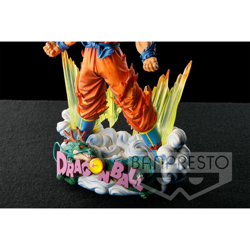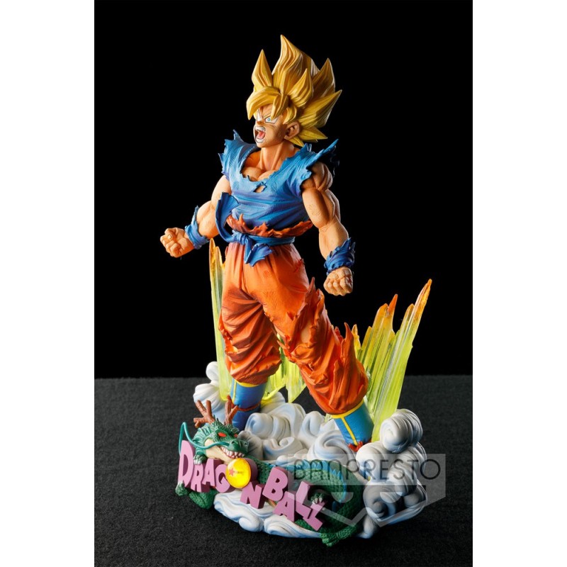 Banpresto presenta esta figura de Super Saiyan Goku, basado en el popular manga y anime "Dragon Ball Super". Esta figura de PVC mide unos 20 cm de alto aprox e incluye diorama como base de soporte especial para exposición.
