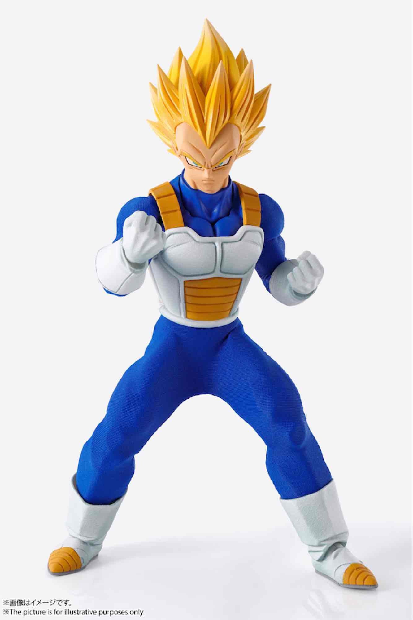 Tamashii Nations presenta la figura de Vegeta de "Dragon Ball Z". Se trata de una figura de PVC, ABS y Silicona. Precisamente es este material de silicona el que permite ocultar las junturas de las articulaciones del cuerpo y hacerlas más naturales. Incluye 2x tipos de expresiones faciales, 3x ojos para cada tipo de pelo incluido a su vez (negro y rubio Super Saiyan), 3x pares de manos opcionales y una base soporte para su exposición.
