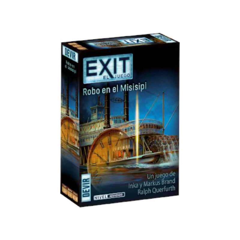 Exit: Robo en el Misisipi es un juego de mesa con el que vivirás la experiencia de las “escape room” en el salón de tu casa. Os sumergiréis de lleno en el exótico Mississippi, a bordo de un majestuoso barco de vapor, cuando, un tremendo robo tiene lugar. ¿Podrá tu equipo de investigadores encontrar al culpable antes de que el barco atraque en Nueva Orleans y el ladrón escape?