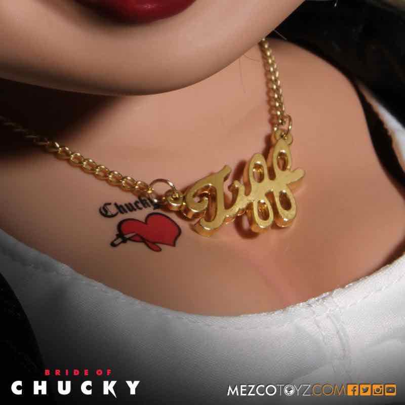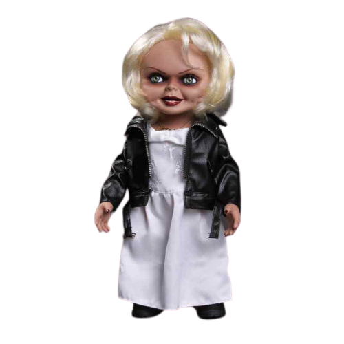 Mezco relanza la muñeca articulada de Tiffany, la novia del muñeco diabólico Chucky. Está hecha en PVC y viste ropa hecha a medida. Mide unos 38 cm e incluye voz y sonido.