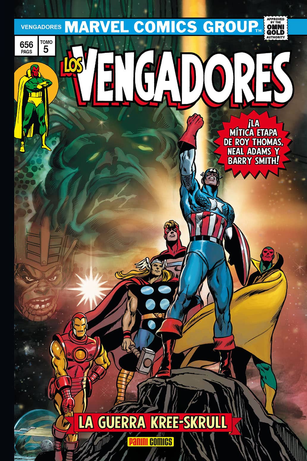 El espectacular Omnigold que recoge una era irrepetible para Los Vengadores: Con la mayor aventura en la que hayan participado jamás, con el ataque al Olimpo, el resurgir de Los Centinelas, la más dura prueba de La Visión y La Bruja Escarlata y mucho más.